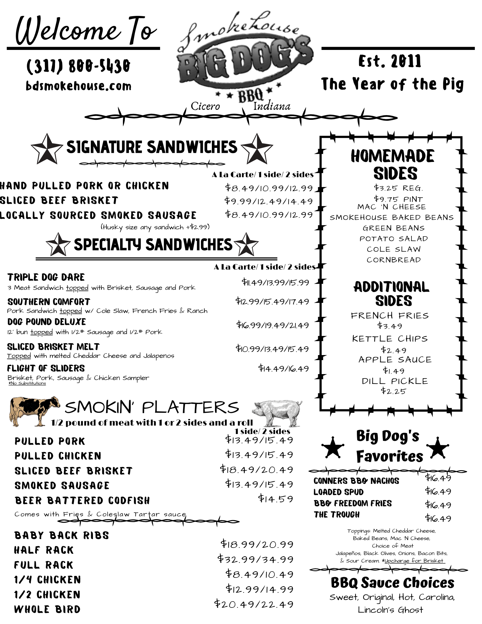 Big Dog's Smokehouse BBQ looks forward to serving you!